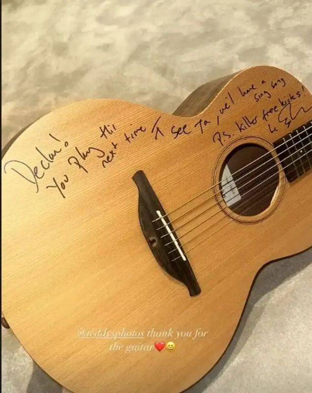 Gitara üzərində “Declan! Gələn dəfə səni görəndə birlikdə oxuyacağıq” yazısı yer alıb.