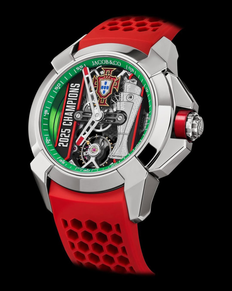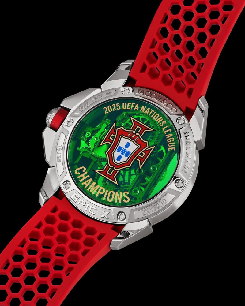 Şirkətin paylaşdığı fotolara əsasən, saat skelotonlaşdırılmış mexanizmə malikdir, üzərində Portuqaliya Futbol Federasiyasının emblemi və Millətlər Liqasının kuboku əks olunub. Arxa hissəsində isə “Millətlər Liqasının Çempionları — 2025” yazısı yer alır. Bu model cəmi 35 ədəd istehsal olunub.