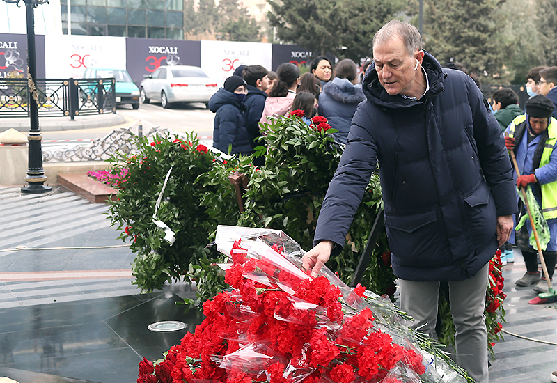 Corner.az xəbər verir ki, onlar soyqırımının 30-cu ildönümü ilə əlaqədar Bakının Xətai rayonu ərazisində faciə qurbanlarının xatirəsinə ucaldılmış abidəni ziyarət edib, şəhidlərin ruhuna ehtiramlarını bildiriblər.