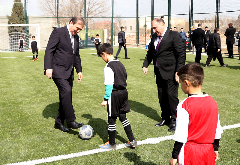 Elxan Məmmədov meydançanın rəmzi açarını Niyazi Bayramova təqdim edib. Daha sonra uşaqların iştirakı ilə oyun keçirilib.